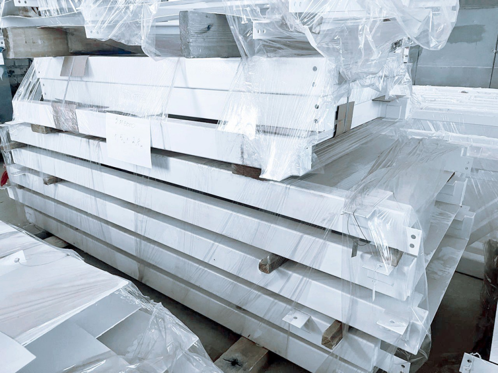 Готовим к отгрузке каркасы окрасочно-сушильных камер (ОСК). На заводе заказчика, куда отправляется наше оборудование, мы построим 2 окрасочно-сушильные камеры, отдельную сушку и 2 камеры подготовки поверхности. Каркасы служат надежным «скелетом» окрасочно-сушильных камер. На них крепятся все остальные элементы: изоляция, нагреватели, вентиляция, двери и автоматика.